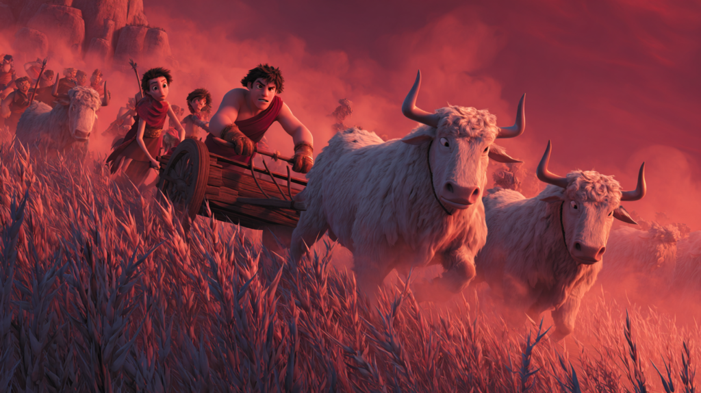Он взял плуг — простой деревянный плуг, в который впрягли белую корову и белого быка — и начал пропахивать борозду по границе будущего города. За плугом шли его сторонники, бросая в борозду комья земли, создавая символическую стену.