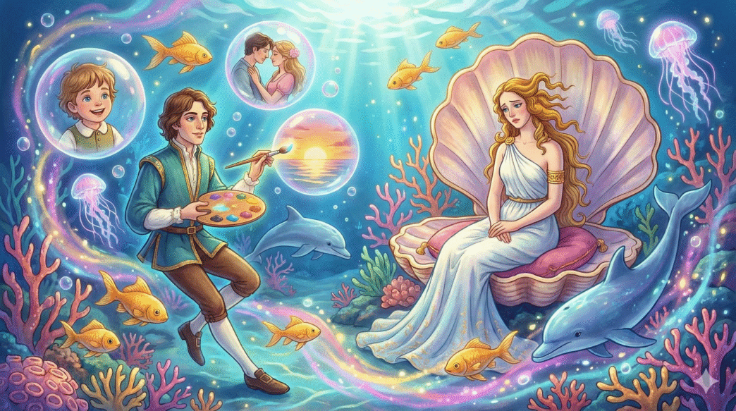 Под водой был целый мир! Коралловые дворцы, стаи золотых рыб, танцующие водоросли. И в центре, в гигантской раковине-троне, сидела ВЕНЕРА.