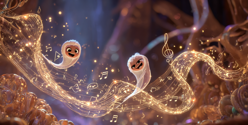 Во время песни в гортани происходило настоящее волшебство: связки вибрировали 440 раз в секунду на ноте “ля”, создавая основной тон. Резонаторы добавляли обертоны — призвуки, делающие голос богатым. Язык и губы формировали слова, превращая чистый звук в смысл.