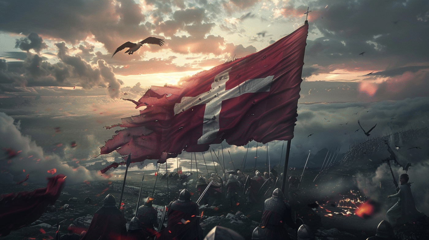 Принц Вальдемар, став королём, приказал: — Отныне и навсегда флаг Дании – белый с красным крестом! В память о чуде при Линданиссе!