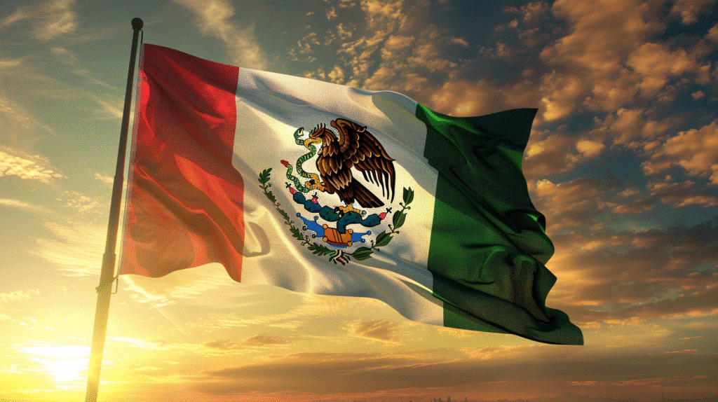 1821 год. Независимость. Первый флаг независимой Мексики. И на нём – мы втроём. Орёл, змея, кактус.