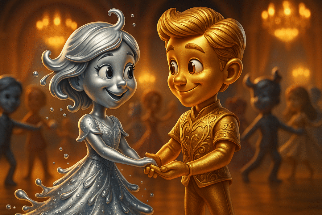 «Но есть одно исключение», — Золотик встал. — «Я читал в древних книгах: золото может растворяться в ртути! Создавать амальгаму! Это единственная настоящая связь, которую я могу создать!»