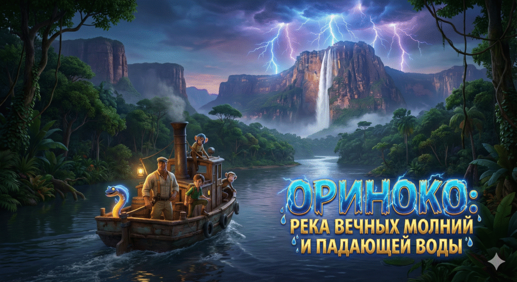 «Кто осмелился войти в земли Бога Молний — Кататумбо?» — гремит голос, сотканный из электричества и воды, из рёва ягуара и треска разряда в миллион вольт. «Я — Ориноко, река, над которой небо воюет с землёй каждую ночь! Две тысячи сто сорок километров через Венесуэлу и Колумбию, от ледяных Анд через кипящие льянос, мимо водопада, падающего с высоты Эмпайр-стейт-билдинг, через воды, где электрические угри могут убить лошадь одним касанием! Готовы увидеть Салто Анхель — прыжок ангела с неба? Готовы почувствовать шестьсот вольт от живой рыбы-электростанции? Готовы провести ночь под вечной грозой, которая превращает ночь в стробоскоп? Садитесь в куриару — лодку-долблёнку народа варао, но помните — в моих водах электричества больше, чем в городской подстанции, а мои молнии видны за четыреста километров!»