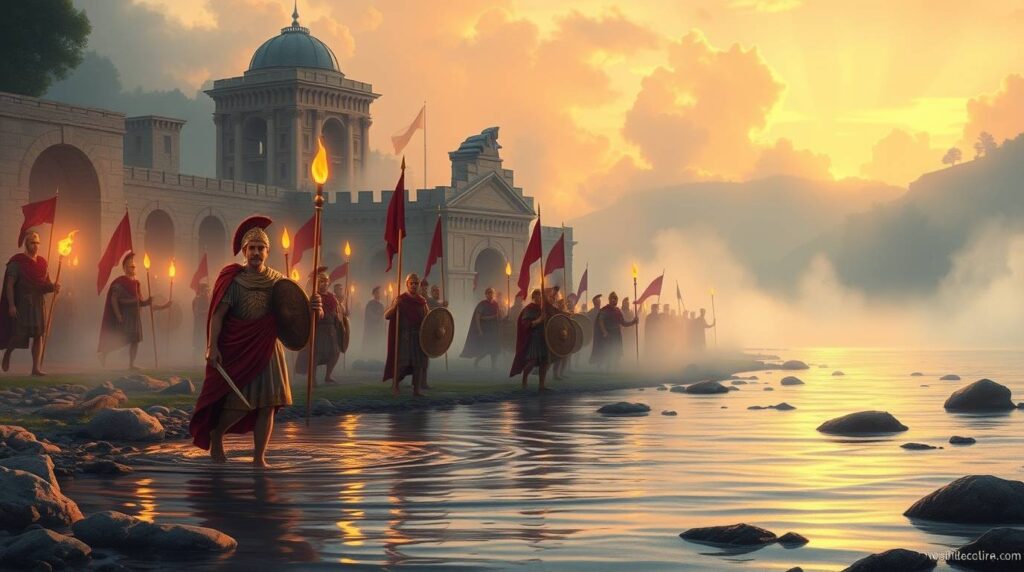 — Солдаты! За этой рекой — точка невозврата! Если перейдём — начнётся гражданская война. Римлянин пойдёт на римлянина. Если не перейдём — я стану беглецом, а вы потеряете всё.