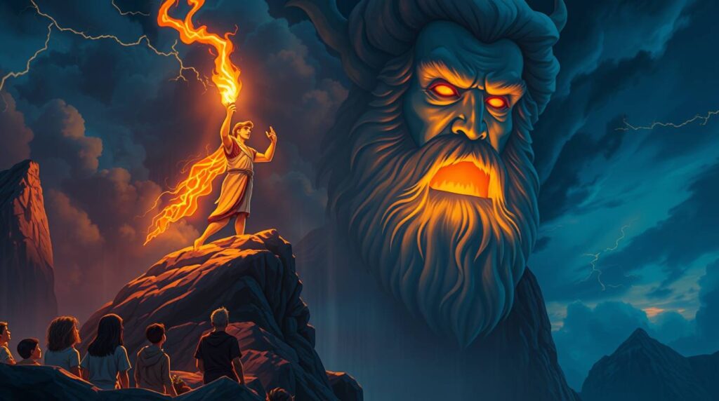 Слушайте внимательно, дети мои, ибо эта история изменила судьбу всего человечества! В те времена, когда мир был молод, а боги правили с вершины Олимпа, жил титан по имени Прометей. Имя его означало “Думающий Наперёд”, и не зря — он был мудрейшим из всех титанов.