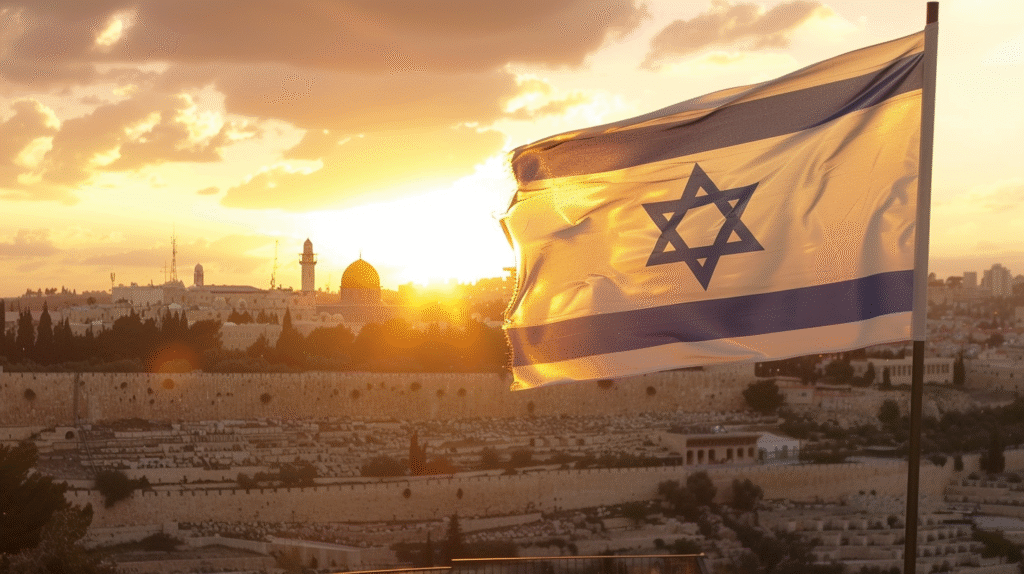 На белом флаге появилась синяя звезда Давида между двумя синими полосами.