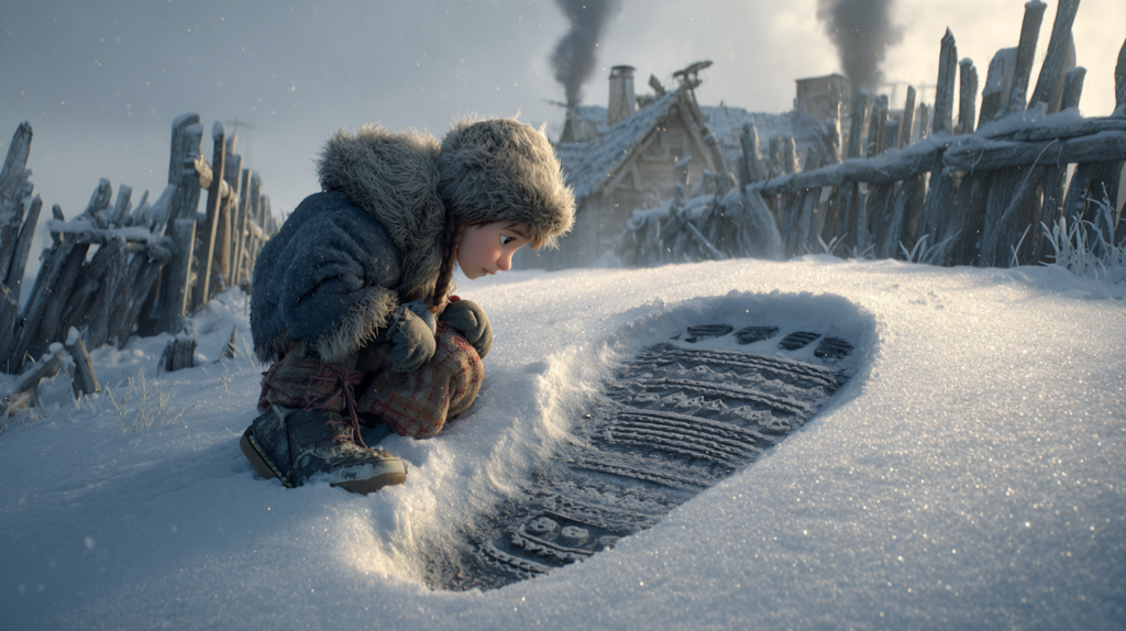 — Это не волк! — выпалила она, влетев в толпу. — Это человек! Там, за сараем, на насте — следы другие! Круглые, с узором! Кто-то привязал к лаптям деревянные лапы!